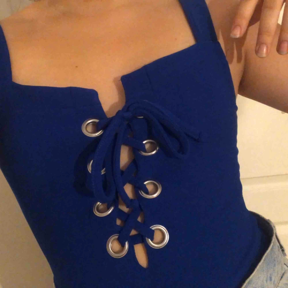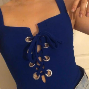Blå body från Tally Weijl! Superfin ”korsett” knytning fram, stretchigt material och bra kvalite. Frakt tillkommer!