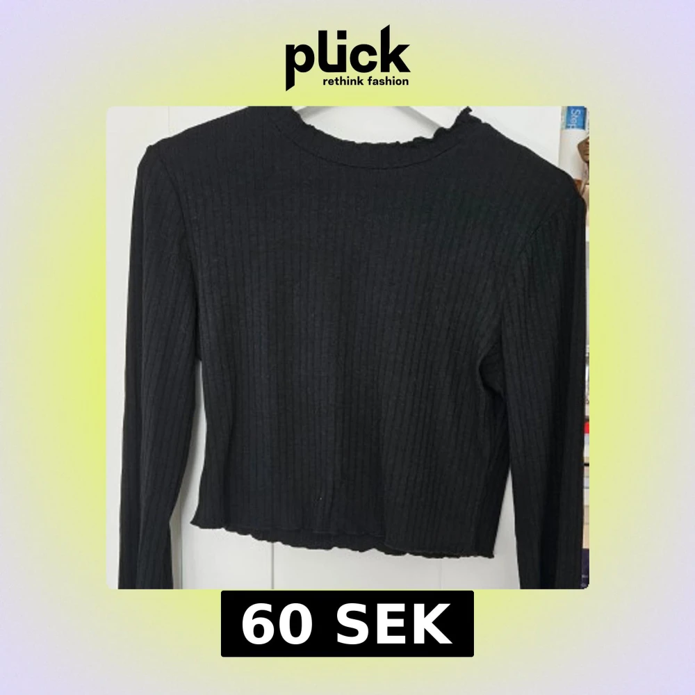 Svart långärmad topp med ribbad struktur och croppad passform. Perfekt att matcha med höga jeans eller kjol för en trendig look.