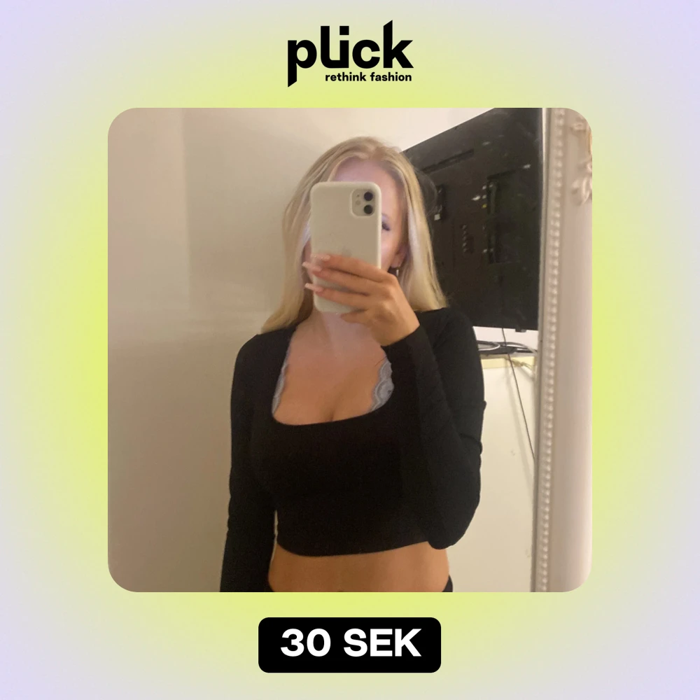 Säljer en svart croppad topp med långa ärmar. Perfekt för en utekväll eller en avslappnad dag. Toppen är tight och framhäver figuren snyggt. Passar bra till både jeans och kjol💗