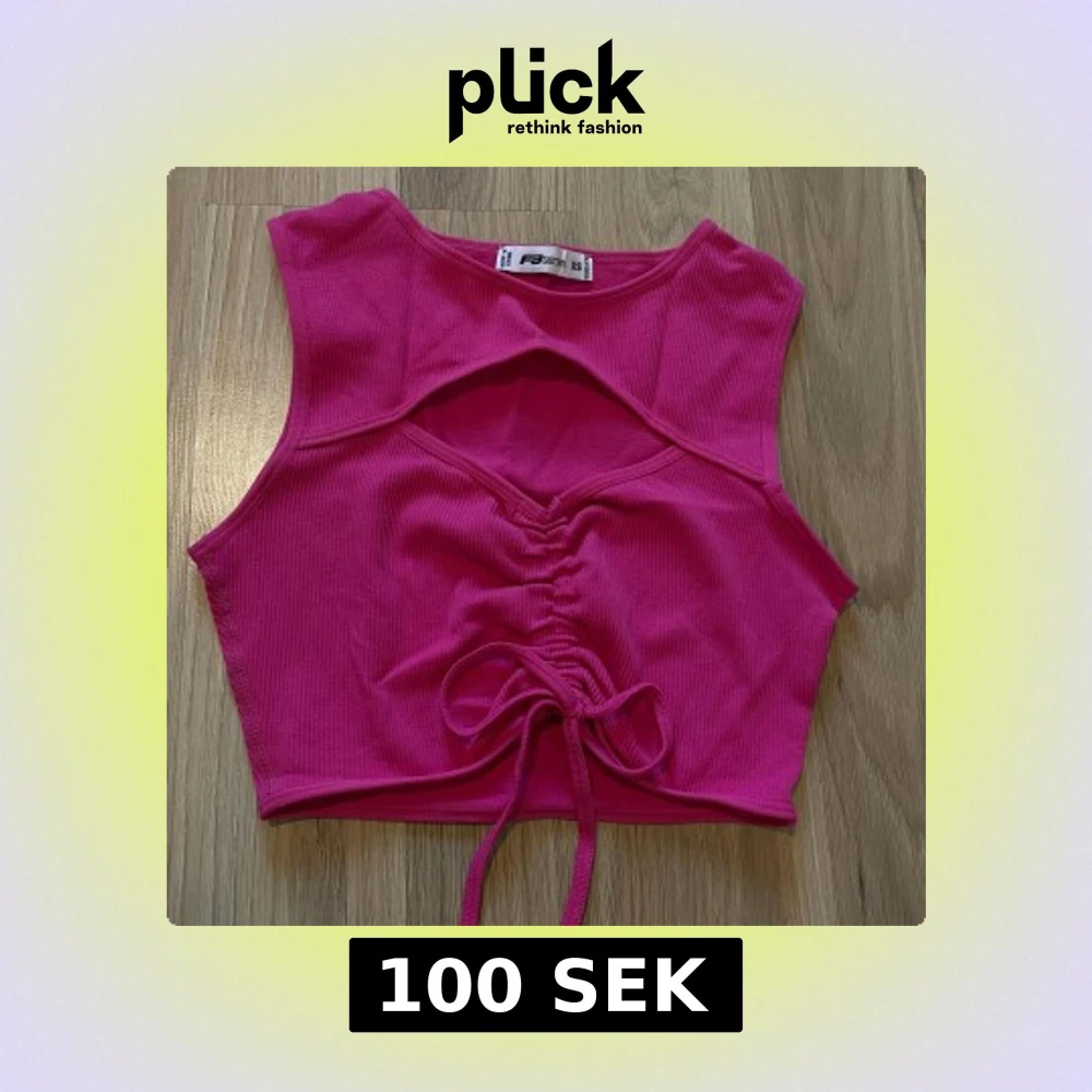 Snygg croppad linnetopp i stark rosa från FB Sister. Toppen är ribbad, har ärmlös design, cut out-detalj framtill och snörning i mitten som ger en cool look. Perfekt för att sticka ut och matcha med höga jeans eller kjol.