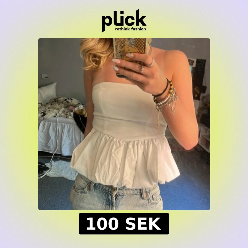 Supersöt vit bandeau topp från FP Sister med volang nertill och smockad rygg. Toppens axelbandslösa design ger en clean och fräsch look, perfekt till jeans eller kjol. Materialet känns lätt och luftigt, vilket gör den nice för varma dagar.