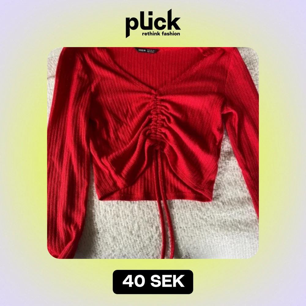 Säljer en snygg röd ribbad topp från Shein. Den har långa ärmar och en cool knytning framtill som ger en fin detalj. Perfekt för både vardag och fest!
