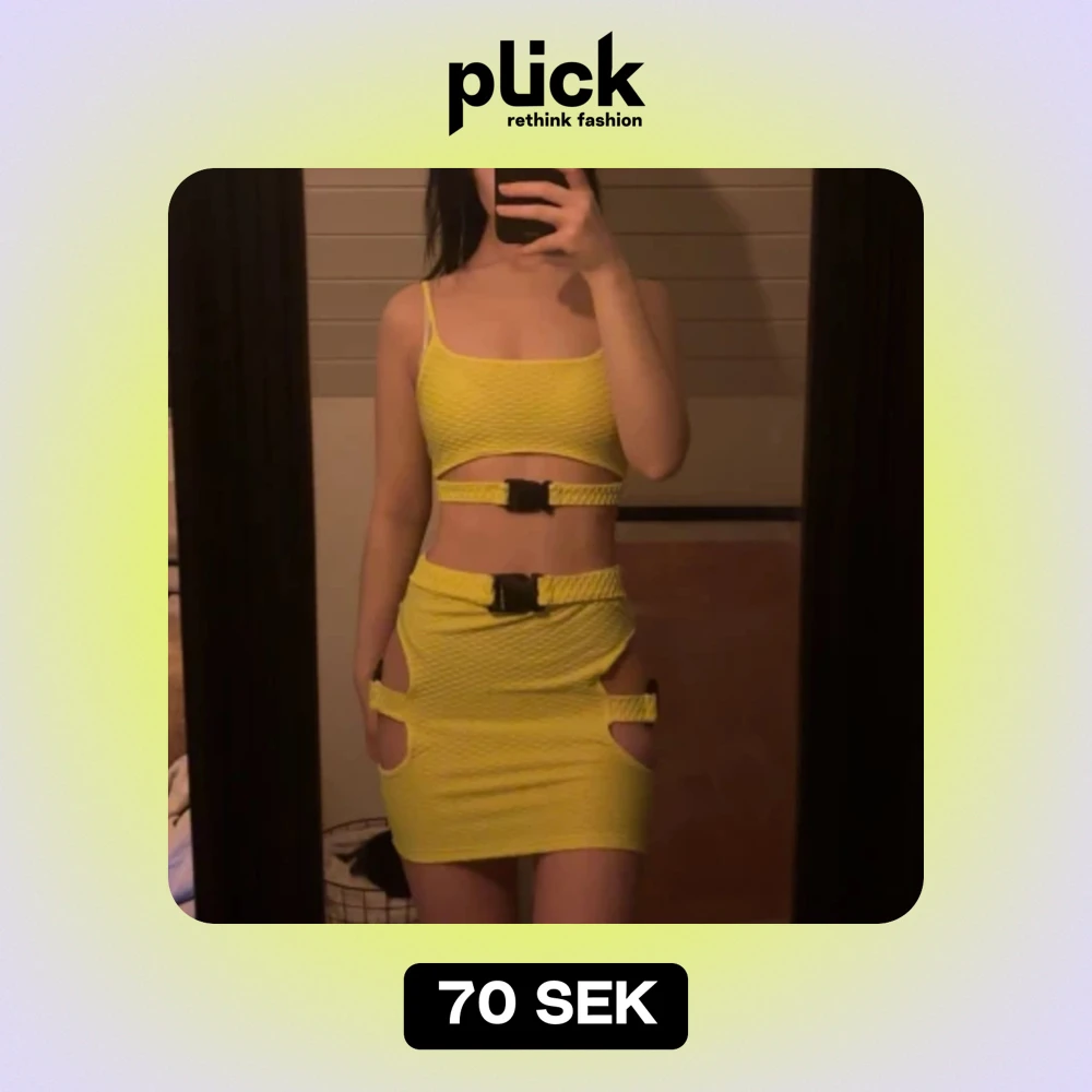 Ett två delat neon-gult set som passar perfekt för festivaler osv.. (aldrig använd) Original pris 130kr