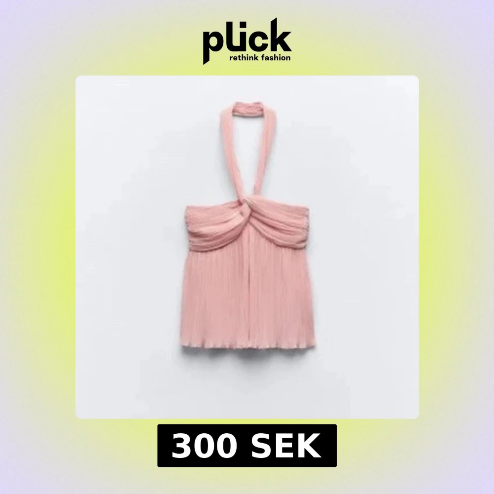 Säljer en ljusrosa halterneck topp med snygg twistad detalj framtill och plisserat tyg. Toppen är perfekt å ha till fest och på sommaren, har aldrig använt den då den inte passat min stil💕