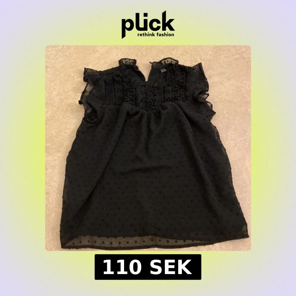 Snygg svart blus med spetsdetaljer och prickigt mönster. Blusen har en v-ringad design och volangdetaljer vid ärmarna. Storlek XS!❤️🫶🏼helt ny utan prislapp.