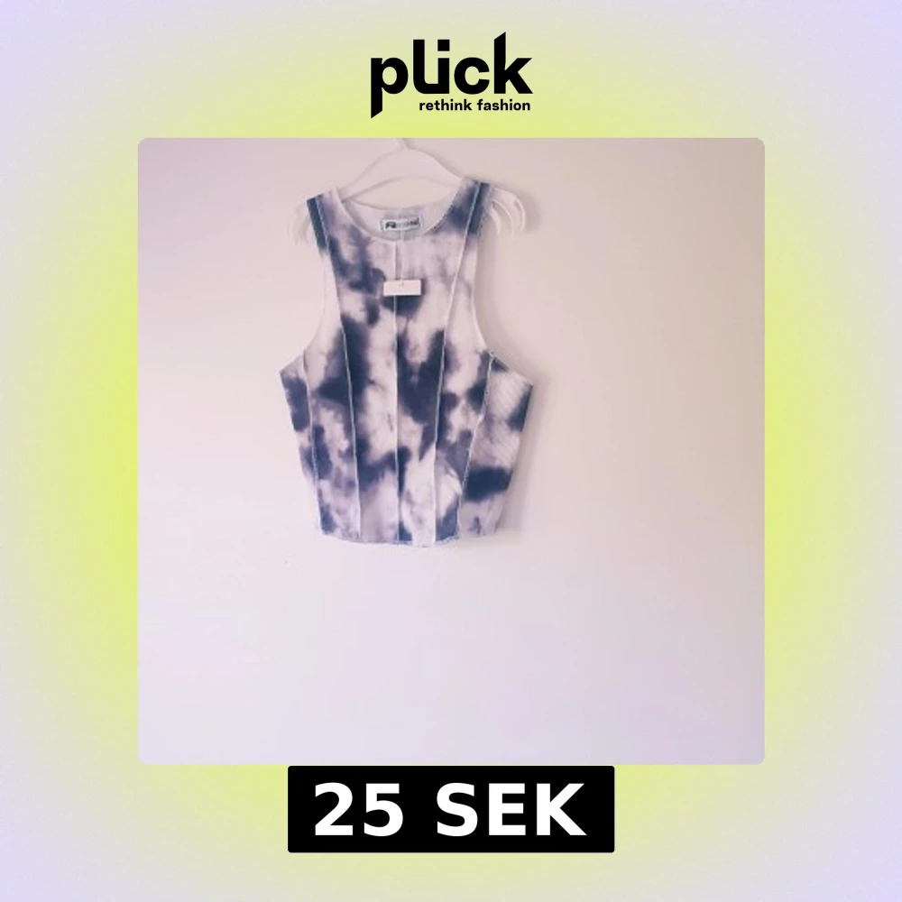 Snygg croppad linnetopp från FB Sister i storlek XXS. Toppen har ett svart och vitt tie-dye mönster och är ribbad i materialet. Perfekt för dig som gillar trendiga och unika plagg med sportig vibe. Ny med lapp så inget att anmärka på