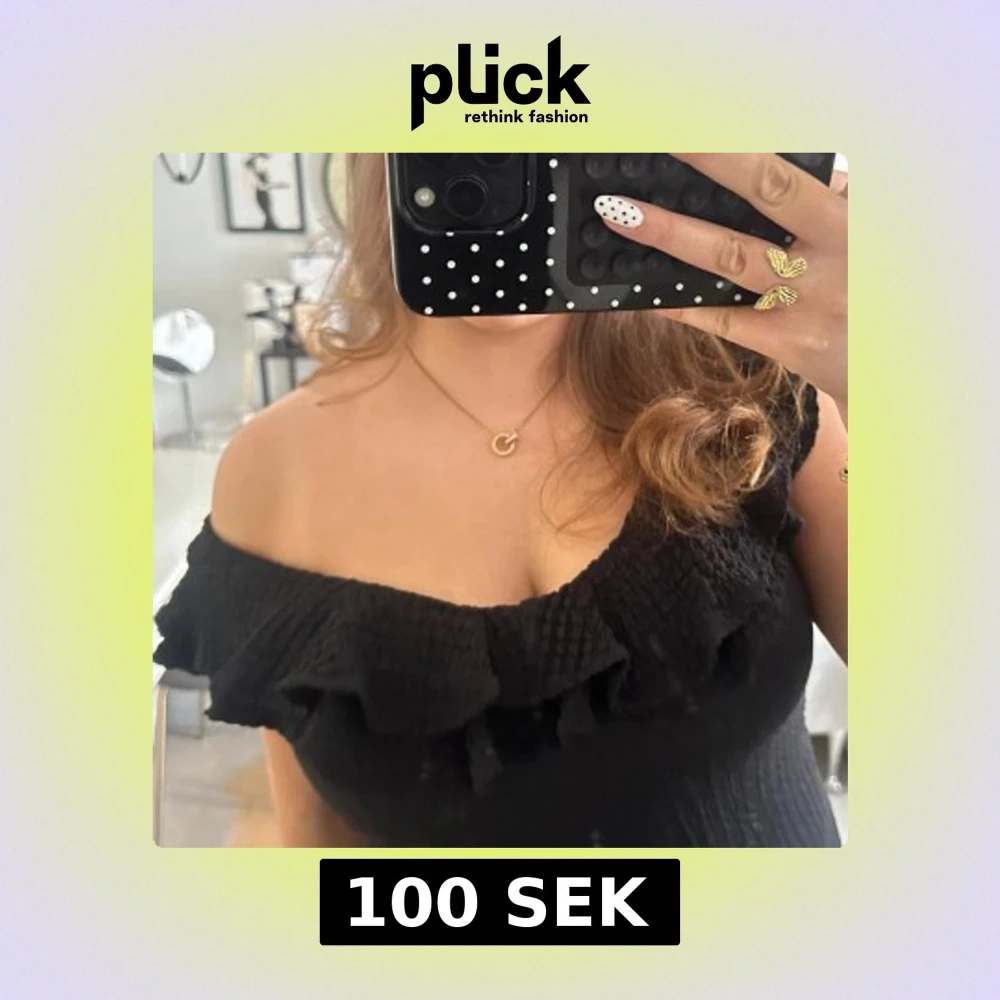 Supersnygg svart offshoulder topp från Lindex med volangdetalj längs urringningen. Toppen har en tight passform som framhäver axlarna. Perfekt för dig som vill ha en trendig och stilren look.