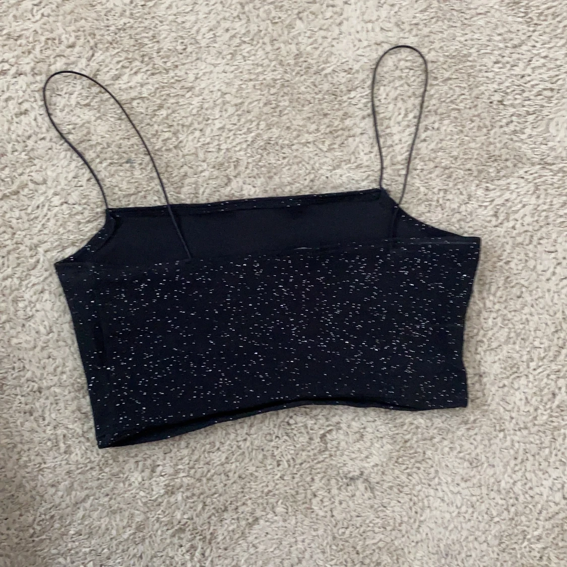Ett svart kort linne. Glittrar. Använt några gånger. Säljer för att det är för litet för mig.