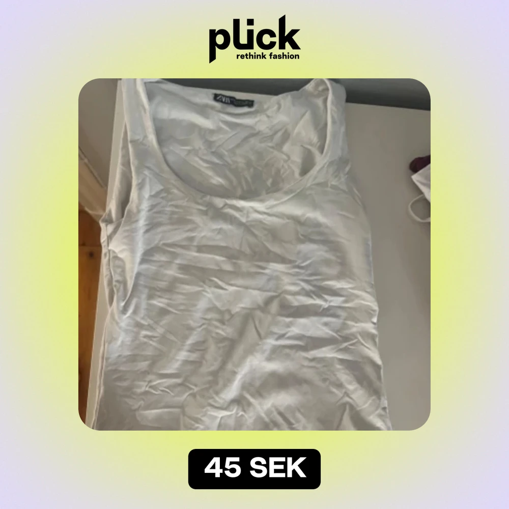 Säljer en enkel och stilren vit linnetopp från ZARA. Perfekt för sommardagar eller som ett basplagg i garderoben. Toppen är ärmlös och har en rund halsringning.