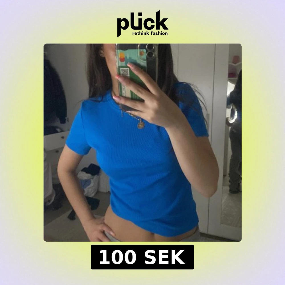 Säljer en fräsch blå ribbad topp med korta ärmar och rund hals. Sitter tajt och är perfekt till jeans eller kjol. Enkel och stilren design som passar till många olika looks.