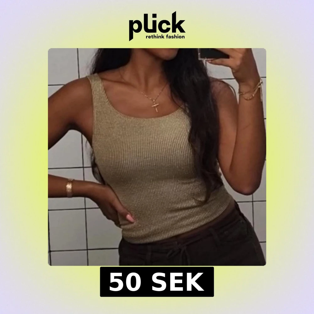 Säljer en beige ribbad linnetopp med croppad passform. Toppen har breda axelband och rundad halsringning, perfekt att styla med höga byxor. Materialet är stretchigt och sitter snyggt mot kroppen.